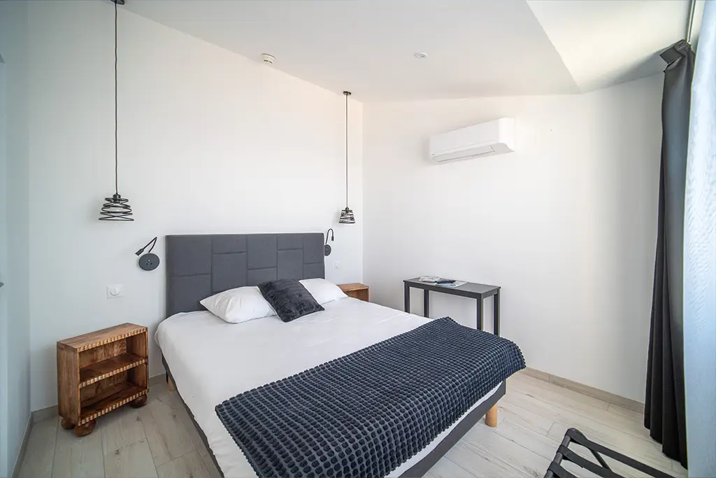 Les chambres Confort sont situées à l’étage de notre établissement. L’accès se fait par un escalier, sans ascenseur, depuis le niveau -1. Trois de nos chambres Confort disposent d’une vue imprenable sur la mer.